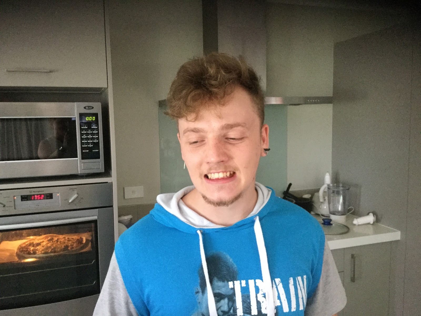 Once you taste this little one, your face cannot remain in a normal expression, as the photo below indicates. (Notice the yummy pizza in the oven, thanks Ruben)